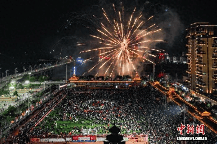 2026年1月2日晚,航拍贵州“村超”现场烟花秀。中新社记者 瞿宏伦 摄